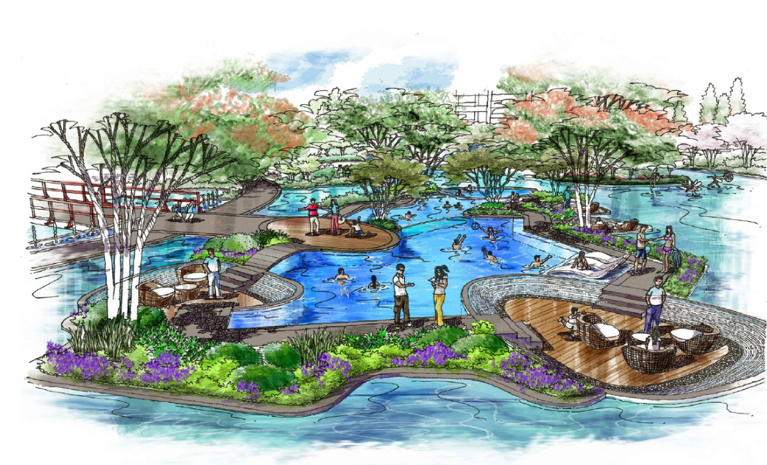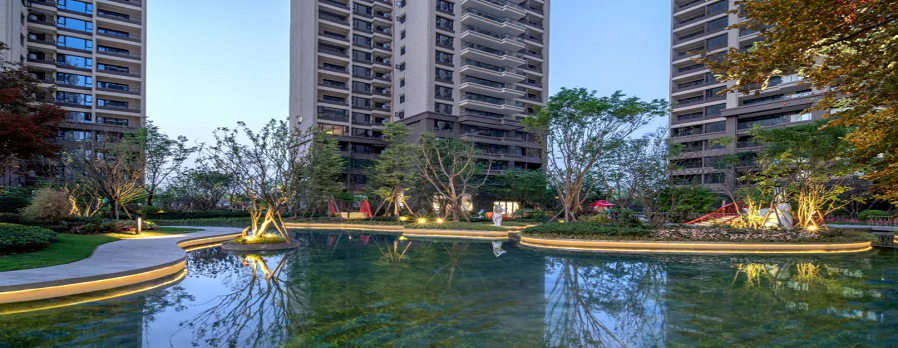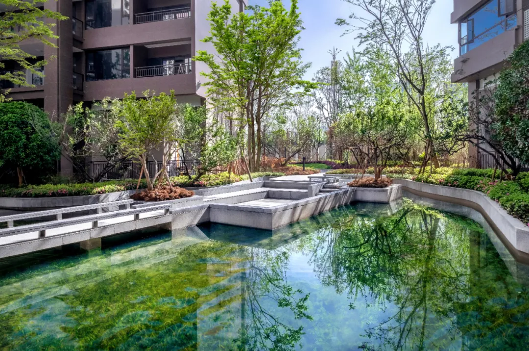 一池水,一片海,它是我們心中美好的水岸島居生活的一個真實夢境。設計師以現代的手法構圖溪岸,融合泛會所、溪流、湖心島等原生態水岸景觀,再現“岸梅溪春又生”的自然時尚居所,給人以森林般的水岸島居體驗,展現島居住宅和諧精緻之美。
