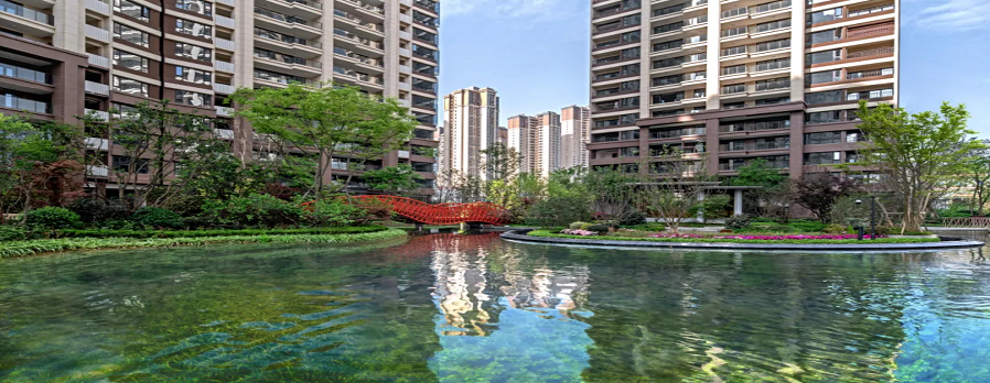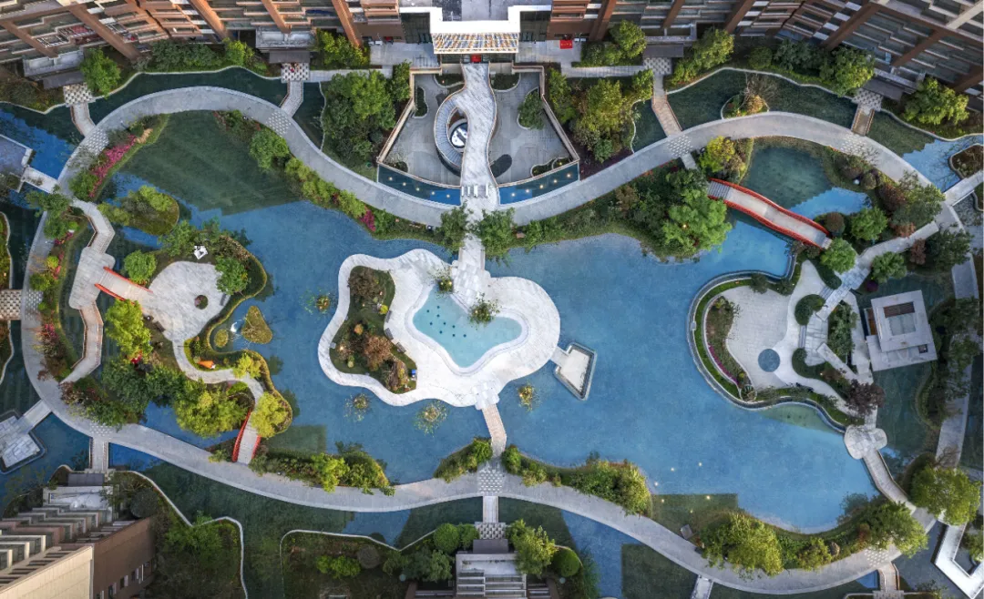 西派泊玥大區是由中國鐵建聯手中科水治理打造的擁有原生態水岸景觀的自然時尚居所。整個場地的空間劃分以水為脈,以島為居,通過蜿蜒變化的棧道將分散在水中的島嶼相連,形成一島一世界,一步一美景的水岸島居景觀。由中科水治理在整個水域構建的“清水型生態系統”,形成“水下森林”的美景。