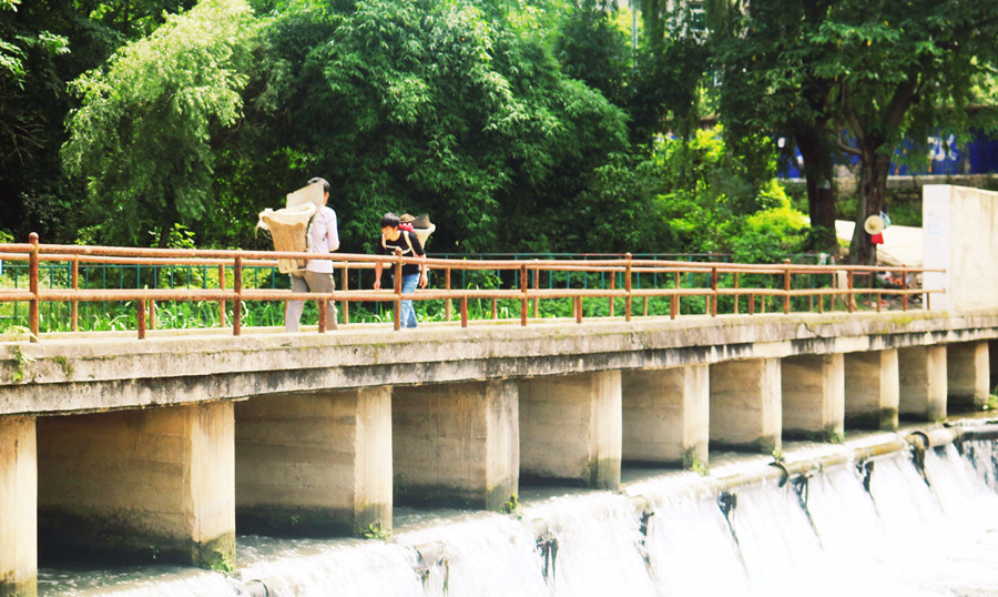 生態濕地選址在金鐘河入湖段旁,理工大校園內家屬區中,地理位置非常偏僻,與外界交通便道相隔遙遠,材料運輸非常不便,構造生態濕地的每一塊泥瓦都由項目部工人師傅用竹簍背入施工場地。